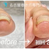 名古屋で「巻き爪の痛み」にお悩みの方、写真のビフォーアフターをご覧ください。